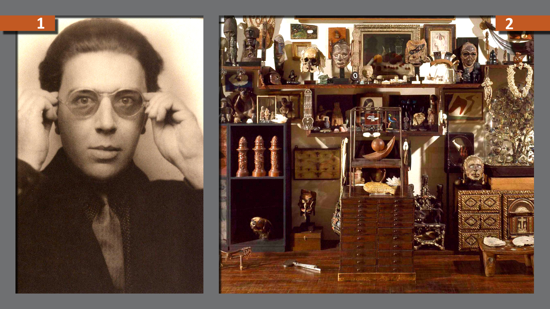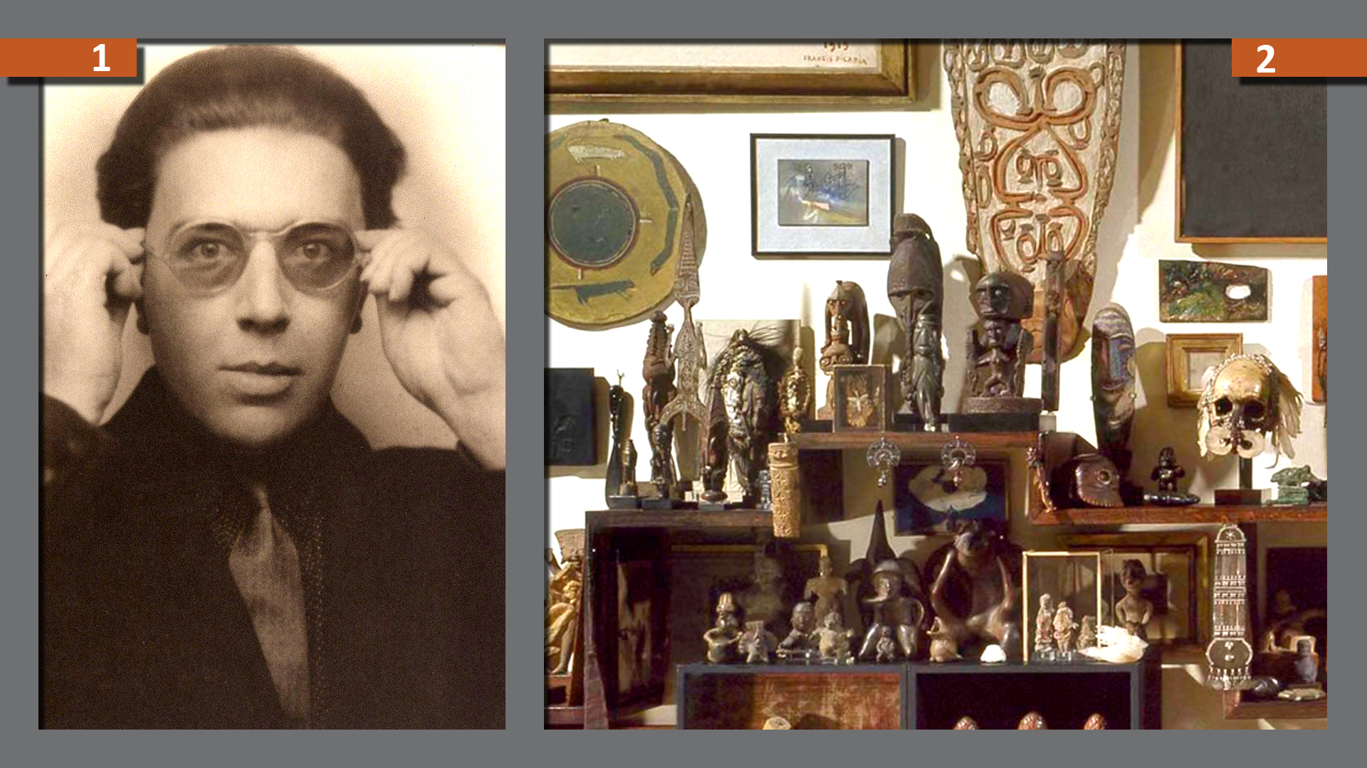André Breton (France 1896–1966) was a poet and theoretician in the surrealist movement. He collected many so-called ‘primitive’ artworks. He was a champion of so-called ‘primitive’ art (from Africa, Oceania and the Americas), and saw art as a way for peoples to be edified.