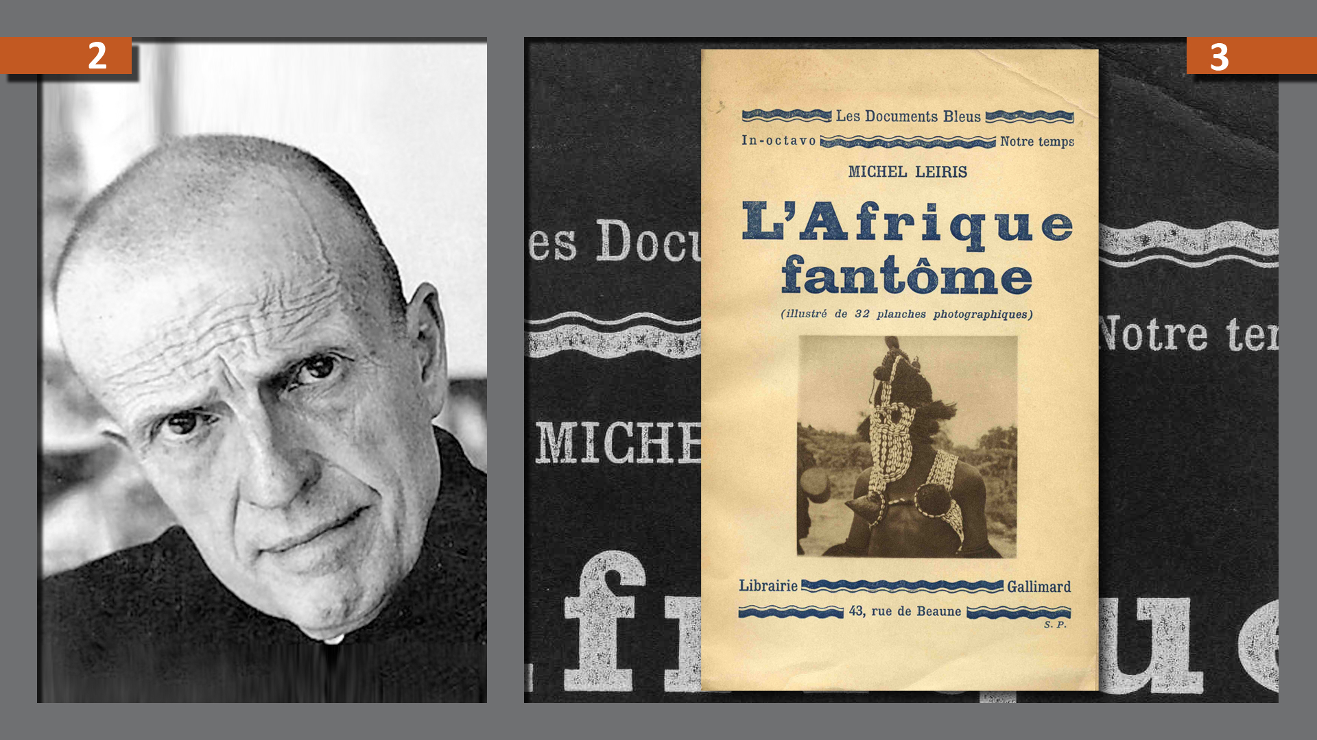 Michel Leiris (France 1901–1990) was a surrealist writer who participated in the Dakar-Djibouti expedition from 1931 to 1933 with Marcel Griaule (1898–1956) as an ethnology student, carrying out secretarial and archiving work. On his return, he was appointed to the charge of the Department of Sub-saharan Africa at the Musée du Trocadero in Paris. He published in the journal Le Minotaure, in the form of a diary, L’Afrique fantôme, where he revealed the working conditions and the progress of the expedition in Africa. There, Michel Leiris denounced the practices of object collecting and the fragility of cultures encountered during his journey.