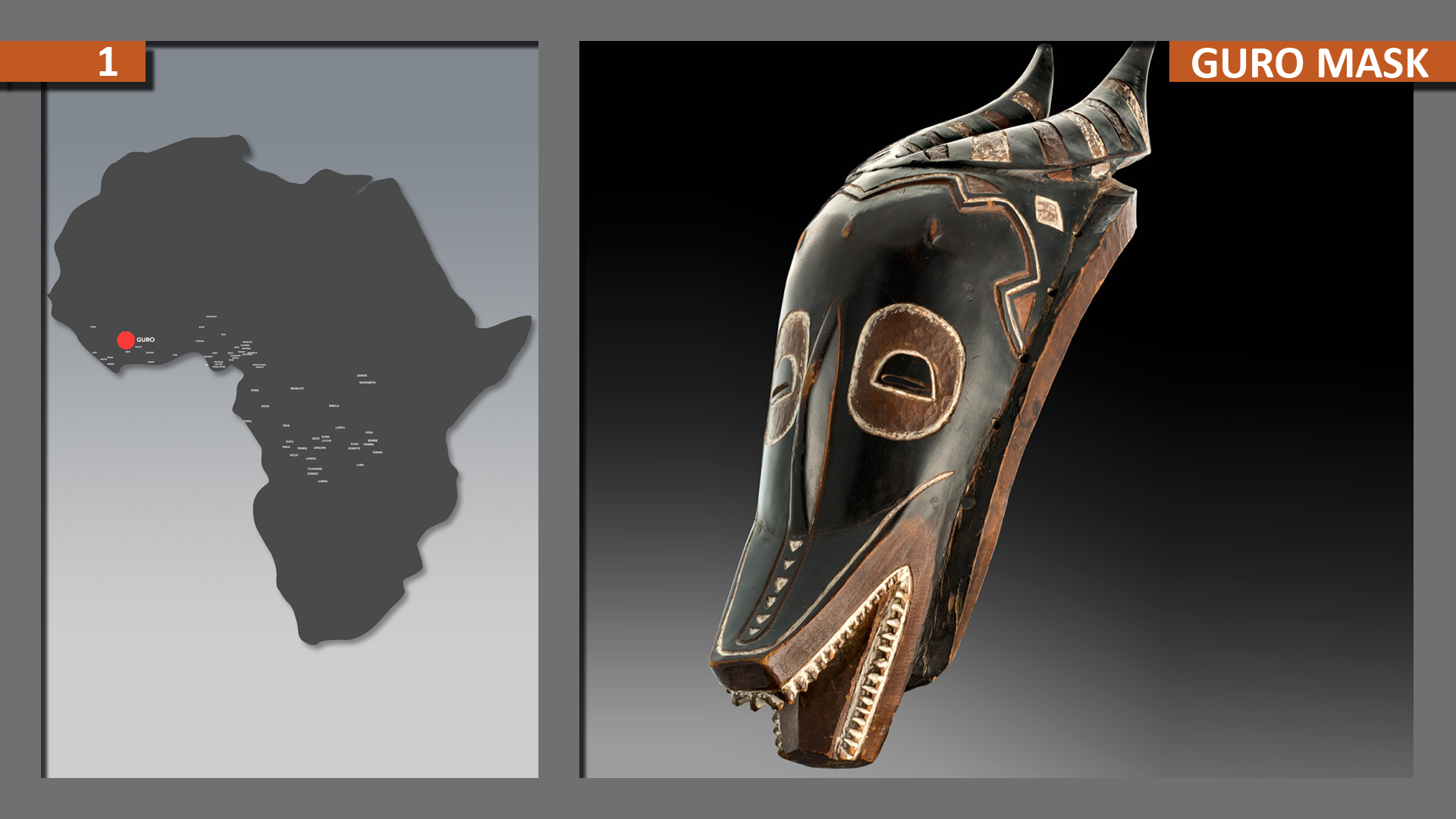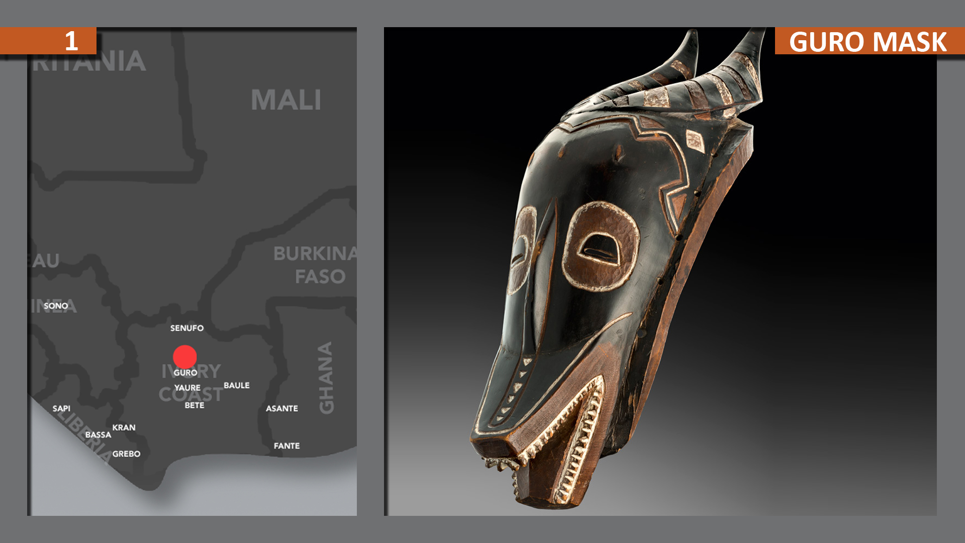 The Guro belong to the South-Mande speaking people and live in the west-central area of the Ivory Coast, in the Bandama River’s valley regions.
